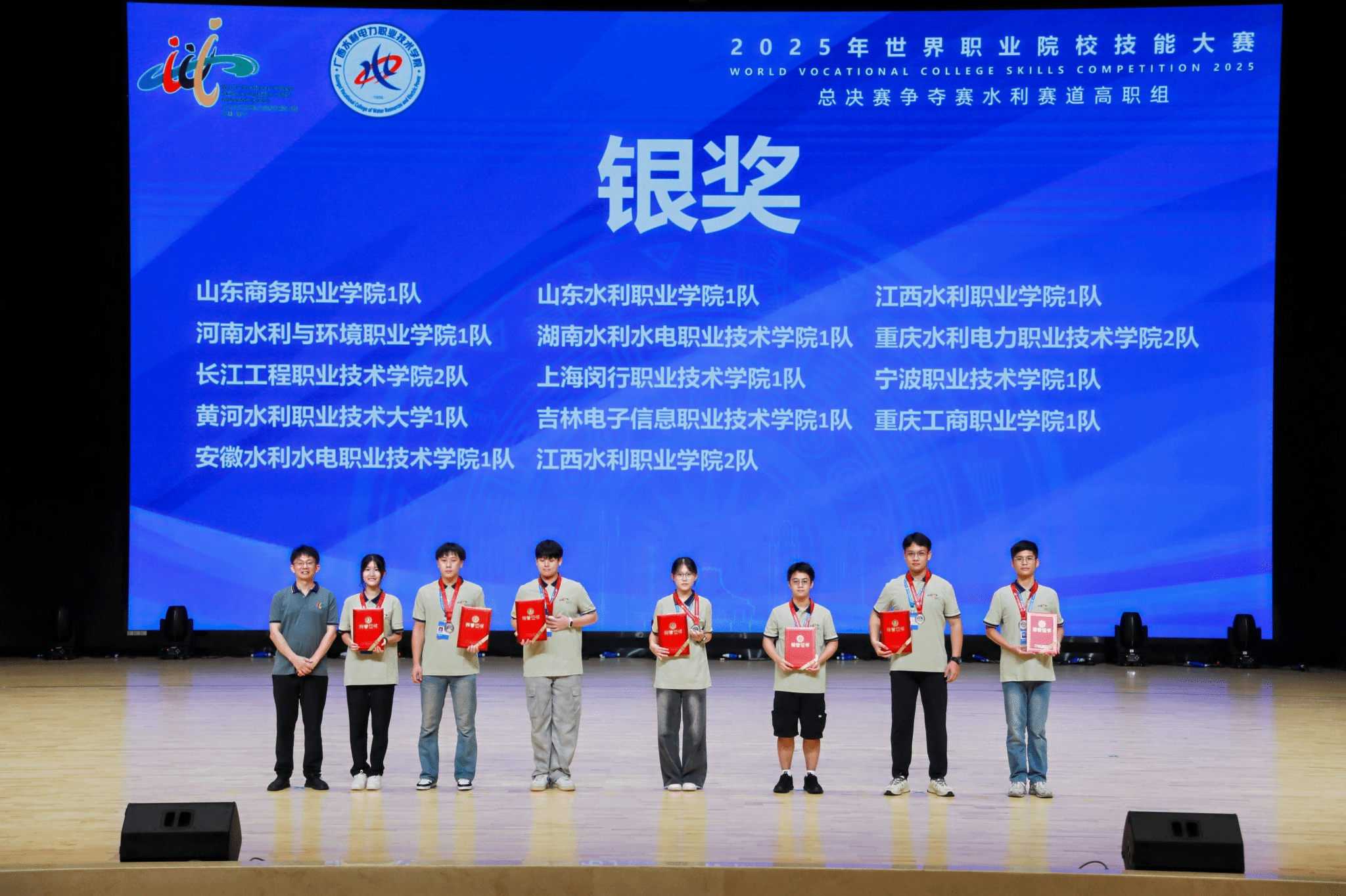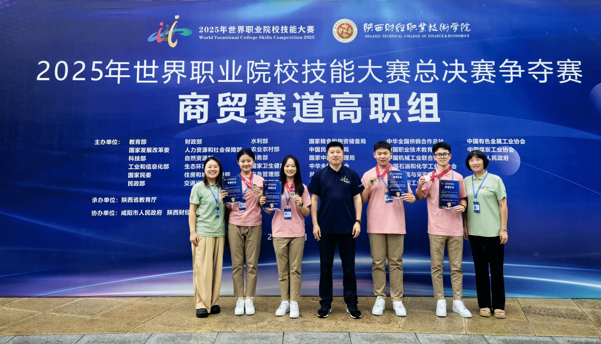 学校始终将技能竞赛作为检验教育教学质量、培育高素质技能人才的核心抓手。为备战2025世校赛,学校全程保驾护航——从精准的技术指导到细致的后勤服务,全方位为参赛队伍赋能。赛场之外,各战队的指导教师与选手们并肩作战:白天反复打磨操作细节、优化流程,夜晚模拟各类突发赛况开展高强度集训,攻克了一个又一个技术难关。这份坚守与拼搏终得回报,“财经”“艺术设计”“教育与体育” 三大赛道成功问鼎金奖,“水利赛道”“商贸赛道”斩获银奖。
