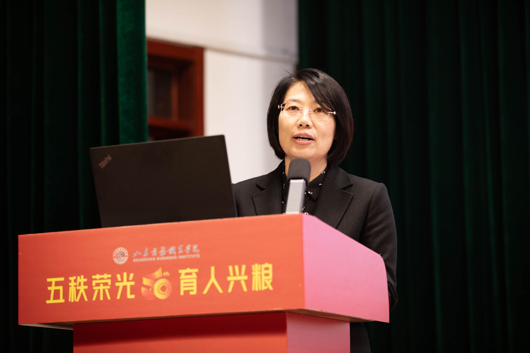 报告会上,于邢香教授代表学校作《坚持粮食特色办学 引领学校高质量发展》报告,围绕党建领航,打造“粮心向党”品牌,构建“四位一体”大思政格局,落实立德树人根本任务;以“粮食行业产教共同体”和“齐鲁粮油产教联合体”两翼驱动,不断创新产教融合工作机制;强化链群对接,实施四大特色工程,打造产教适配“244”专业集群,同时以粮食储运加工专业群为例,解读了专业群的建构逻辑、建设路径及成效。于邢香强调,学校将持续厚植粮食特色,提升关键办学能力,为服务国家粮食安全战略和区域经济发展培育更多高技能人才。