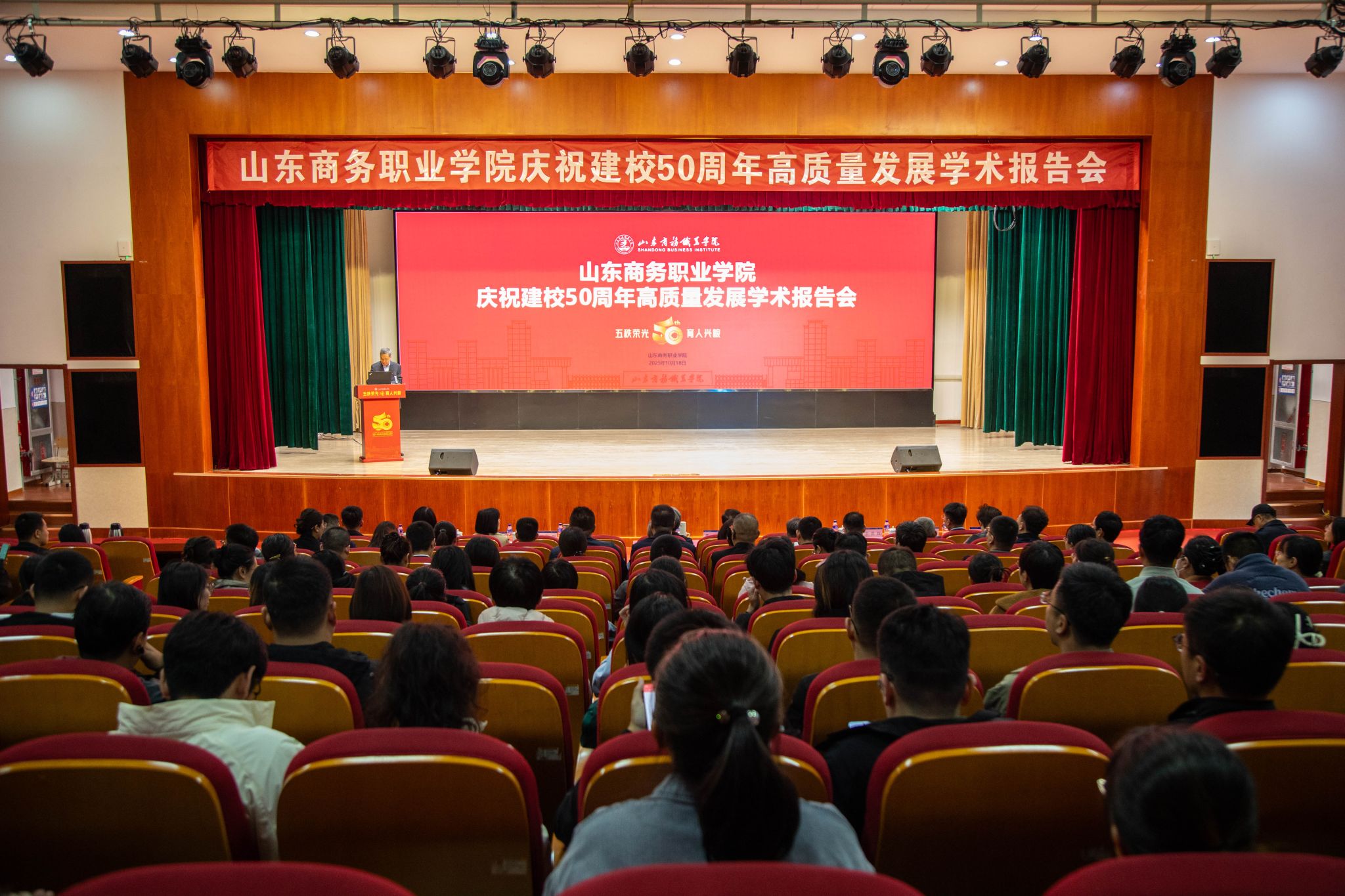 本站讯 10月18日,我校建校50周年高质量发展学术报告会在学校音乐厅隆重举行。本次报告会特邀全国高职高专校长联席会议荣誉主席、天津职业大学原校长董刚教授,中国高等教育学会职业技术教育分会理事长、浙江金融职业学院原党委书记周建松教授,山东商务职业学院党委委员、副校长于邢香教授,为全校师生带来三场高水准学术盛宴。报告会由学校党委副书记、校长王发明主持。