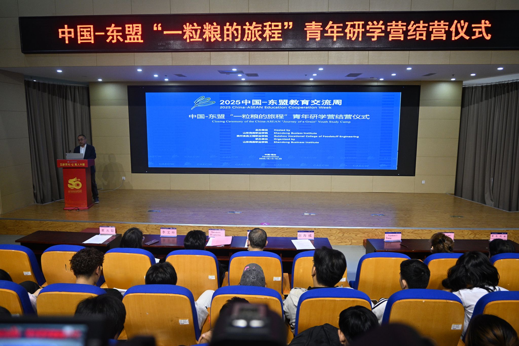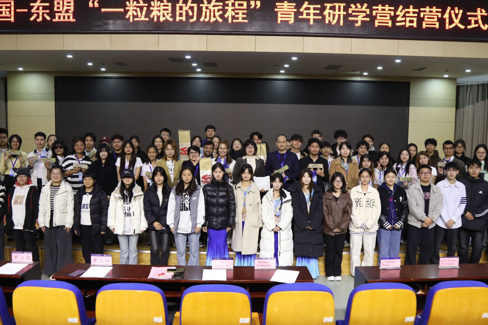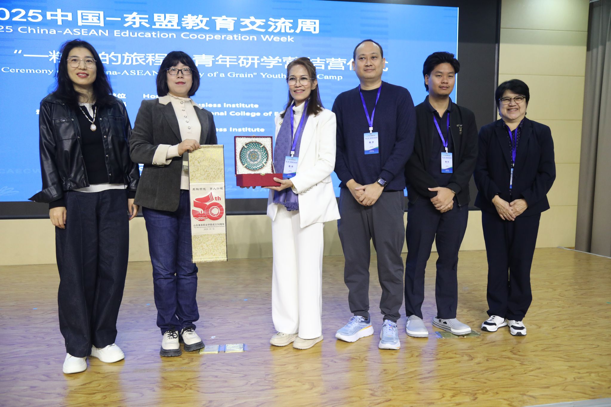 本站讯 10月26日上午,2025中国—东盟“一粒粮的旅程”青年研学营结营仪式在学校图书馆举行。本次研学营由我校及贵州食品工程职业学院联合主办,自10月14日开营至26日结营,历时13天,中泰师生以“粮”为纽带完成全部研学任务,为跨国教育交流与产业合作写下生动注脚。