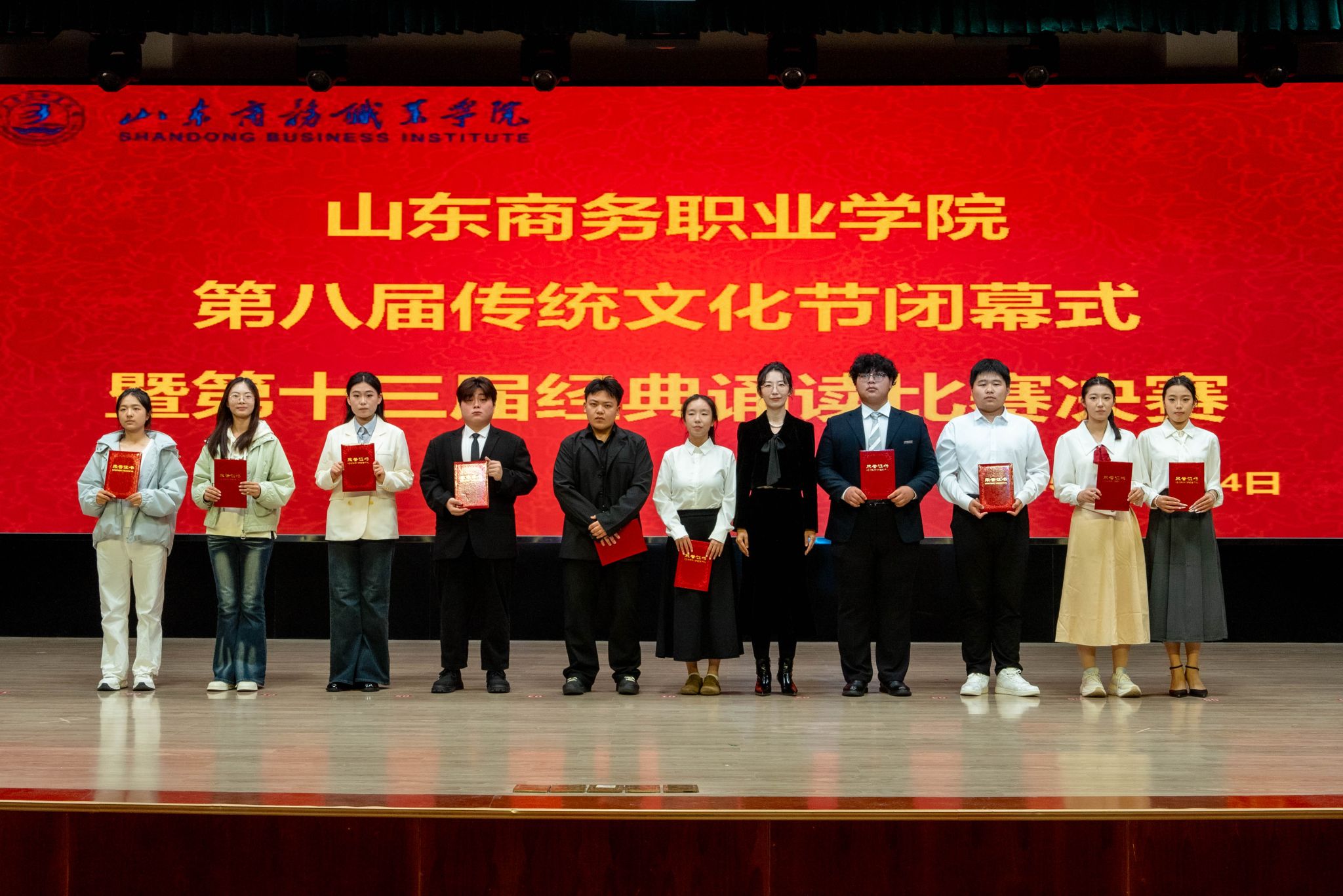 作为传统文化节的收官之作,经典诵读比赛历经班级选拔、学院初赛、校级复赛的层层筛选,来自各二级学院的十组优秀选手脱颖而出晋级决赛。决赛现场,选手们精神饱满、意气风发,以饱满的情感、抑扬顿挫的语调诠释经典魅力。《红旗渠》的诵读再现了战天斗地的奋斗史诗,《诗词歌赋里的中华》则串联起唐诗宋词的千古风韵,《最后的家书》以细腻情感打动全场观众。抑扬顿挫间,是对英雄先烈的缅怀,是对家国山河的赞颂,更是对传统文化的深情告白,充分展现了商务学子的文化自信与青春担当。