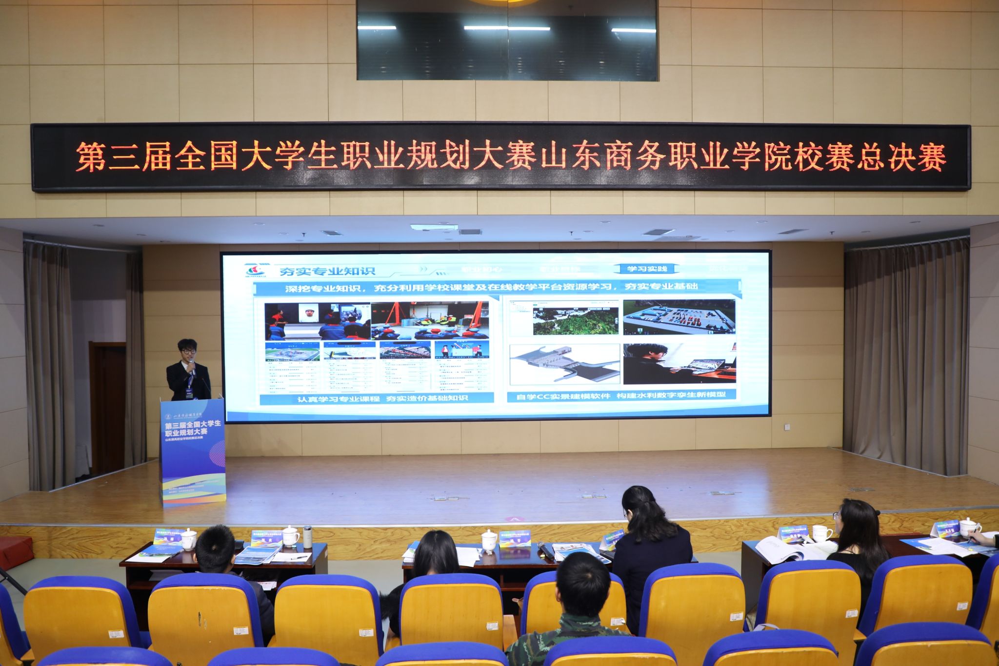 本站讯 12月23日,我校第三届全国大学生职业规划大赛校赛决赛在党性教育基地圆满落幕,本次大赛以“规划职业之路,成就精彩人生”为核心,旨在为全校学子搭建展示自我、明确方向、提升能力的优质平台,助力我校学子在成长道路上锚定职业坐标,在青春赛道上书写奋进篇章。校企合作与就业工作处处长、各二级学院就业辅导员、指导老师及在校学生现场观看了本场比赛。