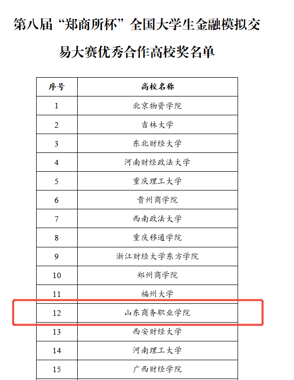 本站讯 近日,我校会计金融学院7名学生凭借扎实的专业功底与出色的实践能力,在郑州商品交易所主办的第八届“郑商所杯”全国大学生金融模拟交易大赛脱颖而出,斩获个人奖项,同时学校获评“优秀合作高校奖”,充分彰显了在党建引领下,金融实践教学的突出育人成果。