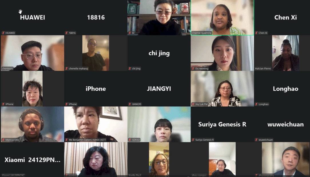 本次活动中方参会代表包括中国驻特多使馆、山东省外事办公室、烟台市外事办公室、山东商务职业学院国际教育学院与艺术设计学院等多位领导及师生代表共同参与。特多方面则由特多国家狂欢节委员会、特多文化艺术协会的领导与文化艺术相关专家共同组成。双方在线上亲切互动,气氛热烈。