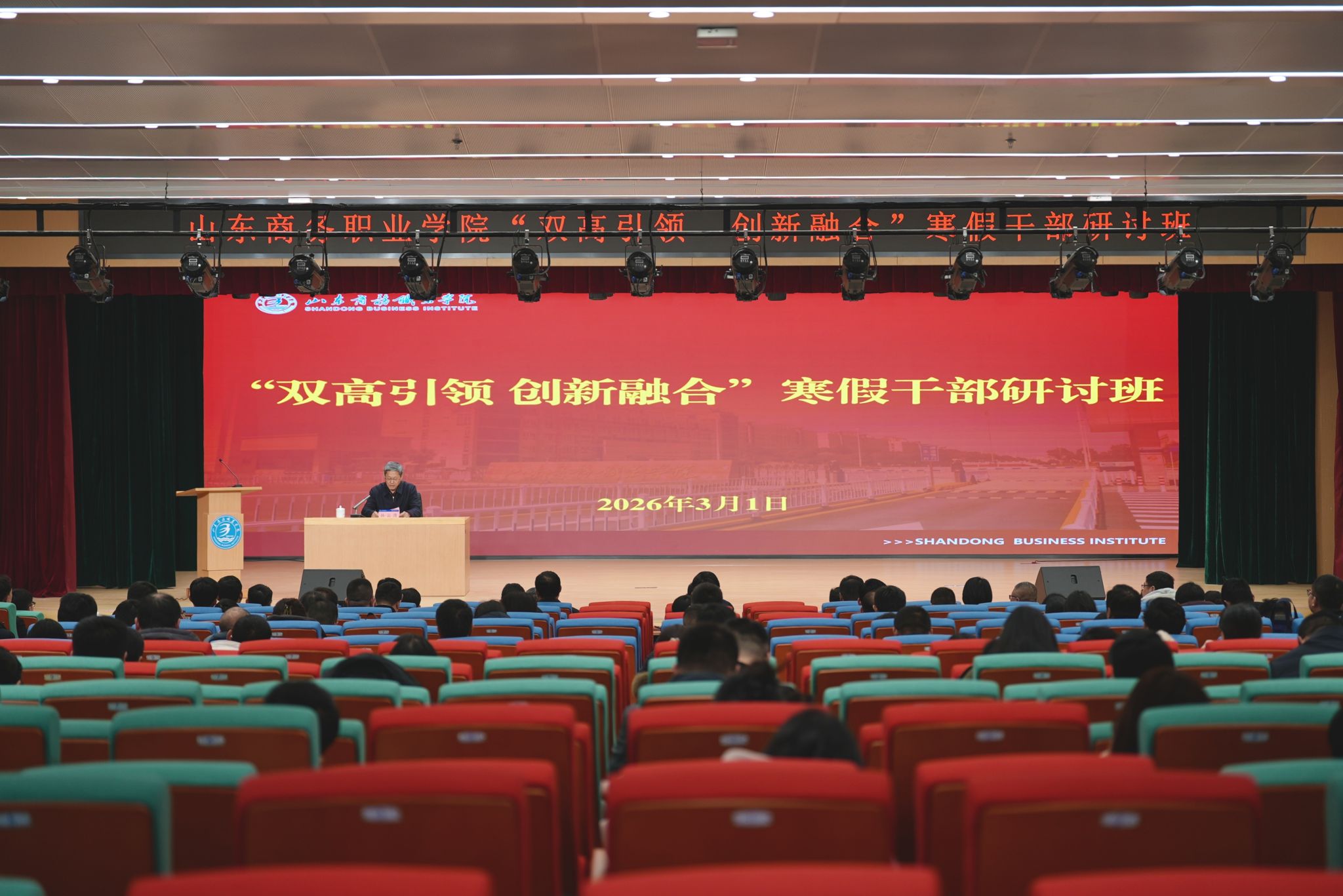本站讯 3月1日,学校在中裕楼中裕厅举办2025年寒假干部研讨班。党委书记孙云茂参加会议并讲话。学校党委班子成员、副科级以上领导干部、专业带头人、全体辅导员参加了会议。会议由党委副书记、校长王发明主持。