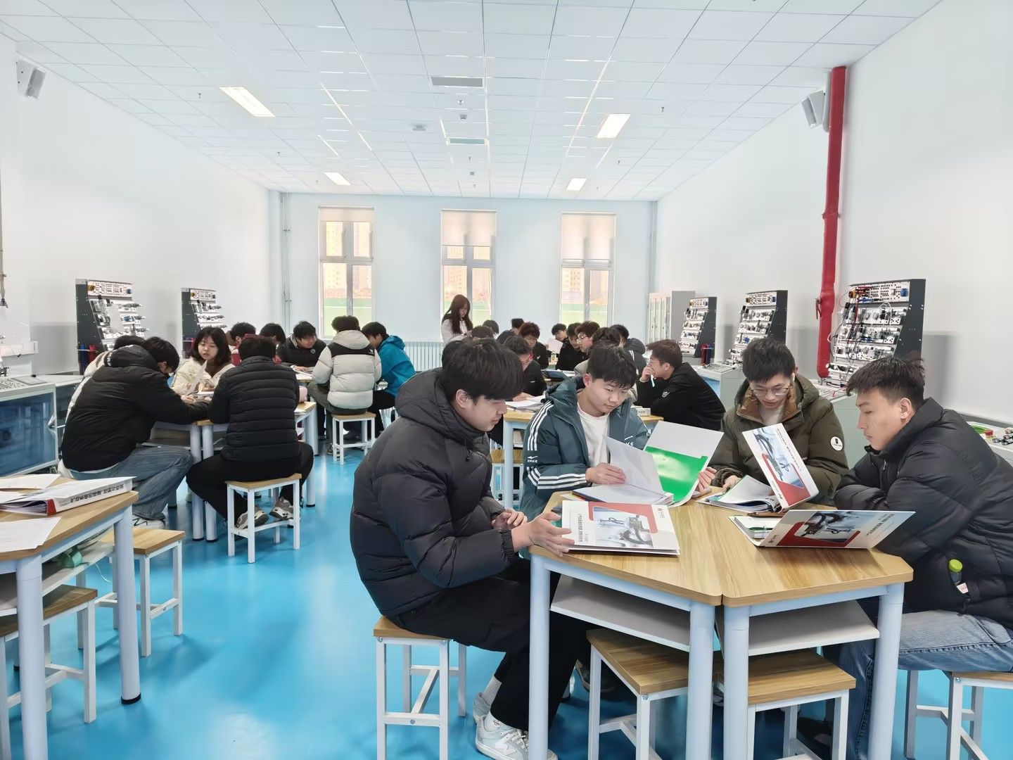 学院全面推进“五金”建设工程,持续深化专业内涵建设。在金专建设上,学院重点建强机电一体化技术、工业机器人技术两个省级高水平专业群建设专业,推动专业链与产业链、创新链精准对接,全力打造特色鲜明的高水平智能制造专业集群。依托中心的实训教学场景,学院重点打造一批理实一体化精品课程,推动课堂教学提质增效。同时,联合行业企业开发一批新形态教材,将企业真实项目与行业前沿技术融入教材内容,填补教学与产业之间的断层。