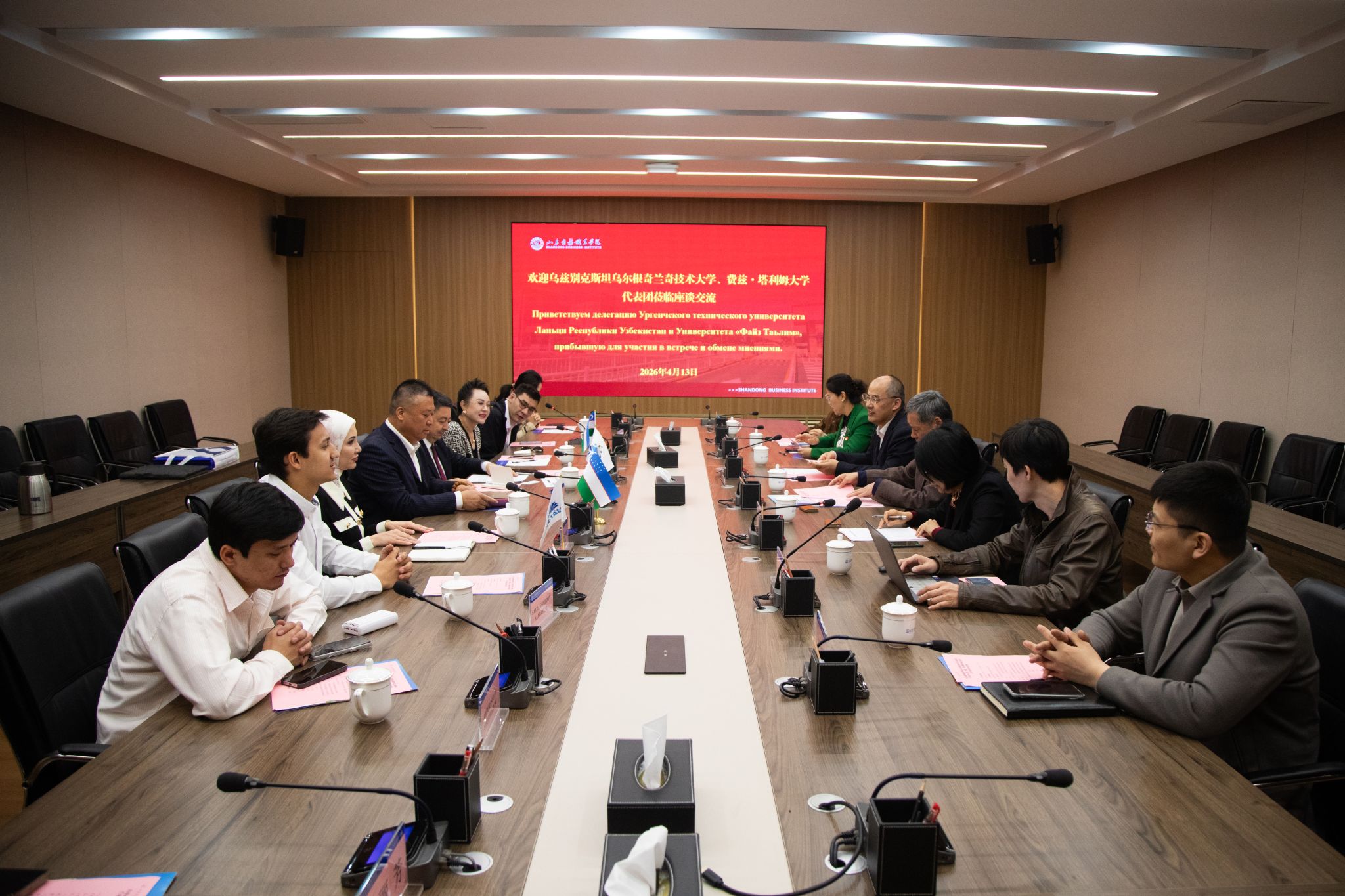 本站讯 4月13日,乌兹别克斯坦乌尔根奇兰奇技术大学、费兹·塔利姆大学代表团到访我校。双方围绕国际化办学、职业教育合作及人工智能领域人才培养等核心议题开展深入磋商,共同签署合作备忘录(MOU),为深化中乌教育交流合作、助力“一带一路”建设筑牢坚实基础。