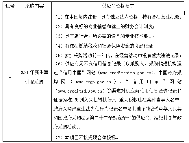 一、采购项目名称:2021年新生军训服采购