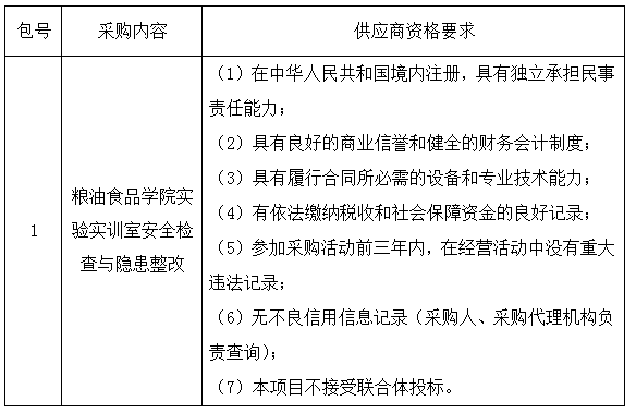 一、采购项目名称:粮油食品学院实验实训室安全检查与隐患整改