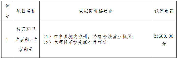 一、采购项目名称:校园环卫垃圾箱、垃圾箱盖采购