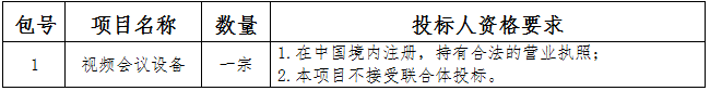 采购内容:视频会议设备;本项目划分一个包;