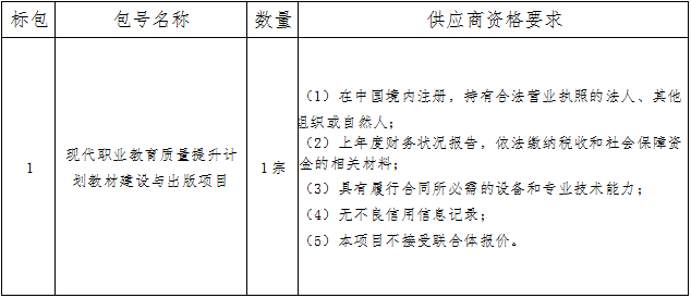 二、采购项目名称:现代职业教育质量提升计划教材建设与出版项目