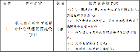 二、采购项目名称:现代职业教育质量提升计划课程资源建设项目