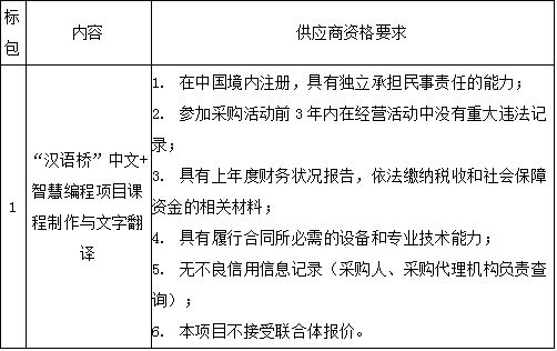 一、采购项目名称:“汉语桥”中文+智慧编程项目课程制作与文字翻译
