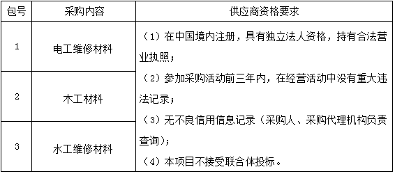 一、采购项目名称:2022年电工维修材料、木工材料、水工维修材料采购
