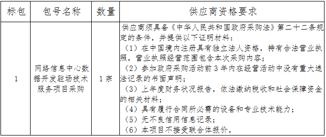 二、采购项目名称:网络信息中心数据开发驻场技术服务项目采购