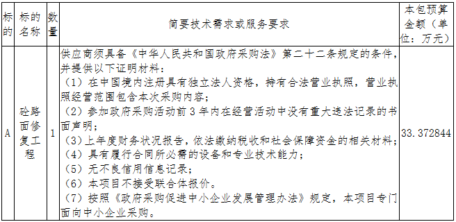 项目名称:砼路面修复工程项目
