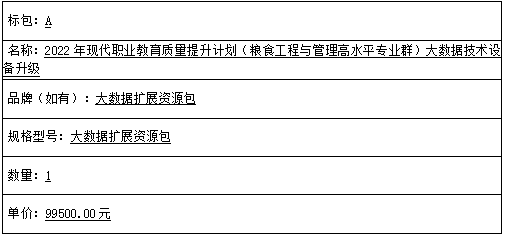 二、项目名称:2022年现代职业教育质量提升计划(粮食工程与管理高水平专业群)大数据技术设备升级