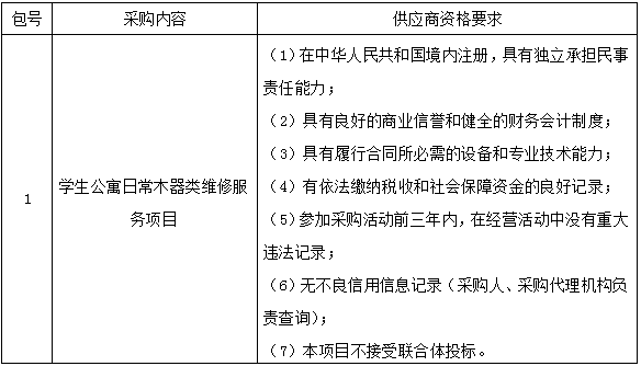 一、采购项目名称:学生公寓日常木器类维修服务项目