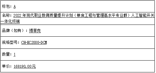 二、项目名称:2022年现代职业教育质量提升计划(粮食工程与管理高水平专业群)人工智能开关一体化终端