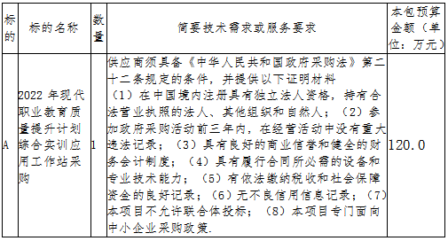 项目名称:2022年现代职业教育质量提升计划综合实训应用工作站采购