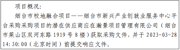 项目名称:烟台市校地融合项目——烟台市新兴产业创就业服务中心平台采购