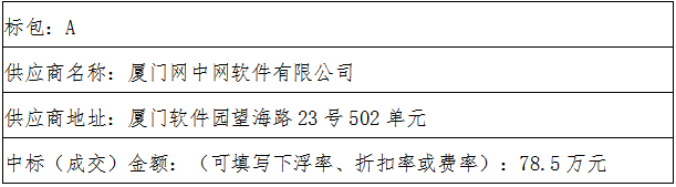 标包A:厦门网中网软件有限公司(100.0、100.0、100.0)、福州亘瑞软件技术有限公司(88.62、91.63、92.62)、上海云梳网络科技有限公司(87.74、88.74、89.74)