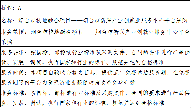 二、项目名称:烟台市校地融合项目——烟台市新兴产业创就业服务中心平台采购
