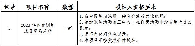 采购内容:2023年体育训练球具用品采购;本项目划分一个包;包号情况:
