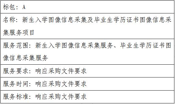 二、项目名称:新生入学图像信息采集及毕业生学历证书图像信息采集服务项目