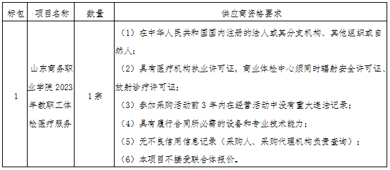 山东商务职业学院2023年教职工体检医疗服务竞争性磋商公告