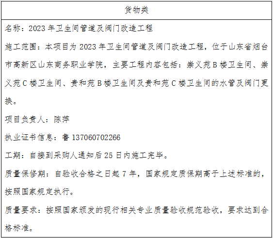 二、项目名称:2023年卫生间管道及阀门改造工程