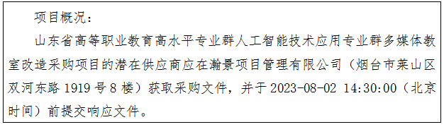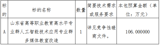 项目名称:山东省高等职业教育高水平专业群人工智能技术应用专业群多媒体教室改造