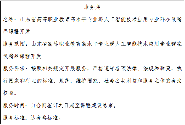 二、项目名称:山东省高等职业教育高水平专业群人工智能技术应用专业群在线精品课程开发