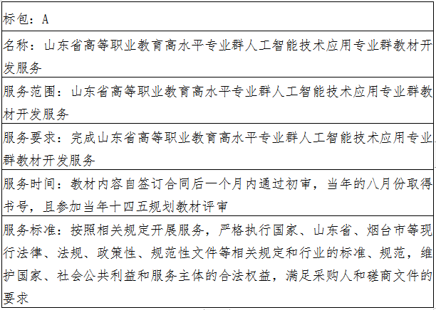 二、项目名称:山东省高等职业教育高水平专业群人工智能技术应用专业群教材开发服务