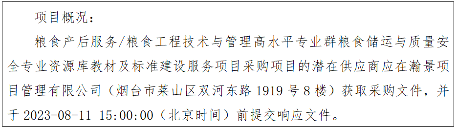 项目名称:粮食产后服务/粮食工程技术与管理高水平专业群粮食储运与质量安全专业资源库教材及标准建设服务项目