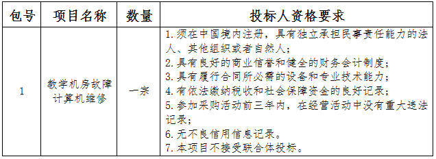 采购内容:教学机房故障计算机维修;本项目划分一个包;
