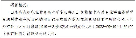 项目名称:山东省高等职业教育高水平专业群人工智能技术应用专业群在线课程资源制作服务项目