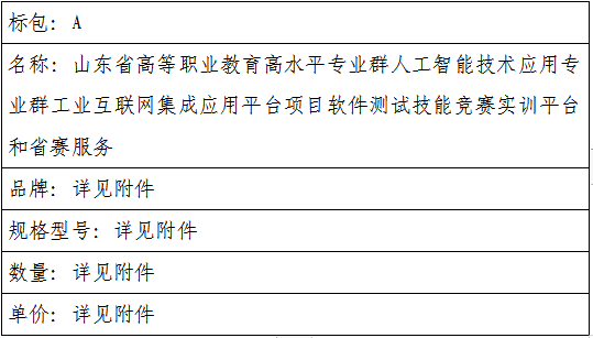 二、项目名称:山东省高等职业教育高水平专业群人工智能技术应用专业群工业互联网集成应用平台项目软件测试技能竞赛实训平台和省赛服务