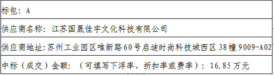 标包A:江苏国晟佳宇文化科技有限公司(92.0、93.0、93.0)、宿迁水悦文化传媒有限公司(81.96、84.96、84.96)、宿迁梦柯文化传媒有限公司(82.97、86.97、89.97)