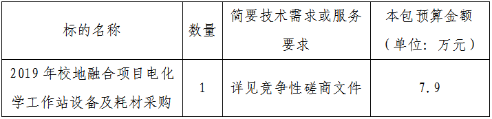 项目名称:2019年校地融合项目电化学工作站设备及耗材采购