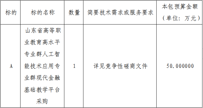 2.项目名称:山东省高等职业教育高水平专业群人工智能技术应用专业群现代金融基础教学平台采购