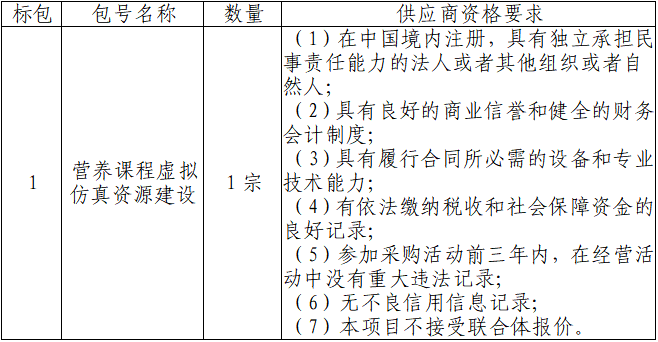 二、采购项目名称:营养课程虚拟仿真资源建设