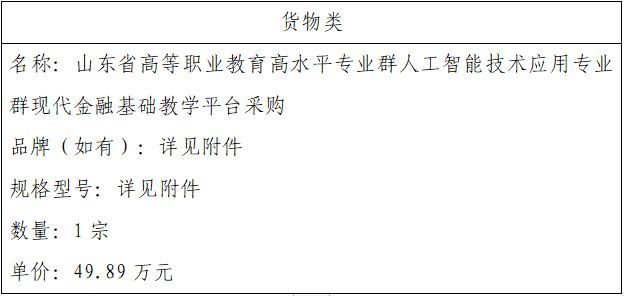 二、项目名称:山东省高等职业教育高水平专业群人工智能技术应用专业群现代金融基础教学平台采购