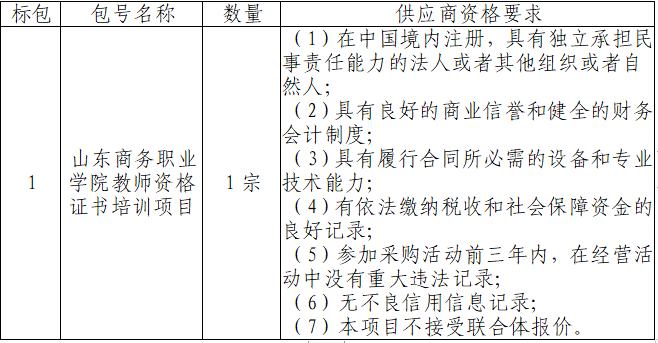 二、采购项目名称:山东商务职业学院教师资格证书培训项目