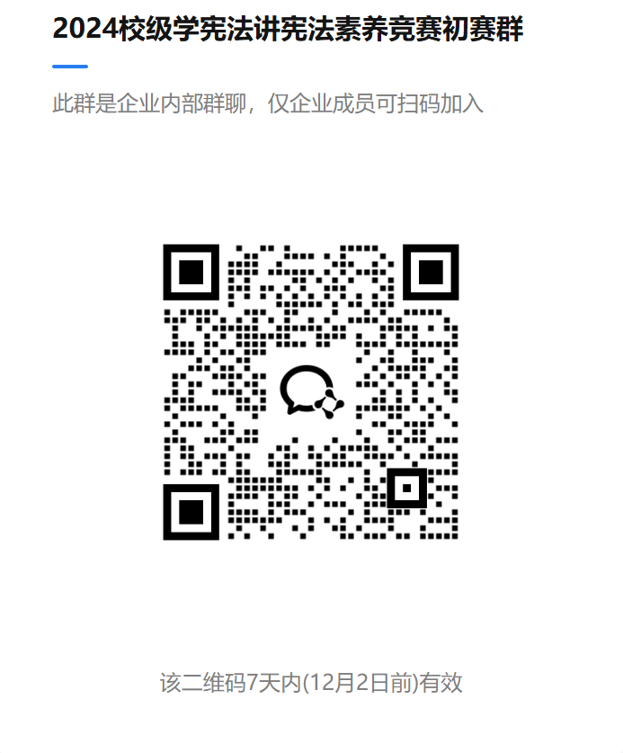 有意愿参与比赛的选手请及时扫描以下二维码加入企业微信群,考试相关事项将在群内统一发布。初赛时考生需要在10分钟内完成30道题目的作答,每位参赛选手只有一次机会,比赛过程中严禁切屏、作弊等行为,答题过程中出现任何与比赛无关的问题由参赛选手本人负责。