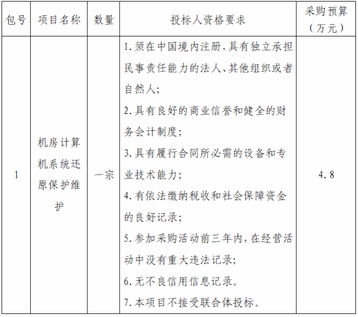 采购内容:机房计算机系统还原保护维护;本项目划分一个包;