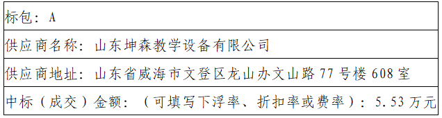 标包A:山东坤森教学设备有限公司(97.0、97.0、98.0)、威海金元素教育装备有限公司(92.51、95.51、97.51)、山东屹海贸易有限公司(91.56、93.56、94.56)、山东耀翔信息科技有限公司(93.12、94.12、96.12)