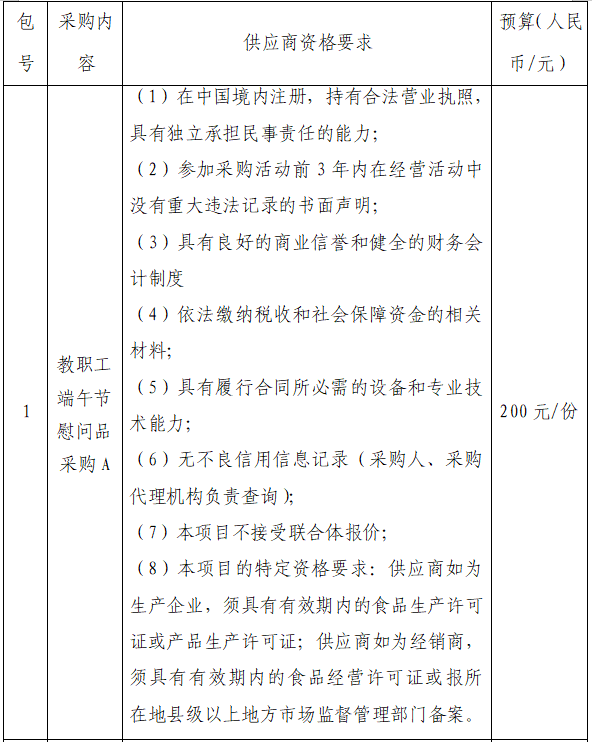 一、采购项目名称:教职工端午节慰问品