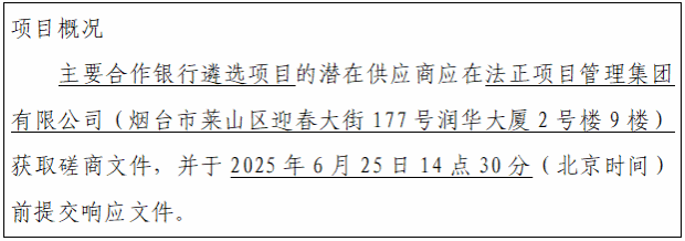 采购需求:本项目为主要合作银行遴选项目,共分为1个采购包。具体要求详见磋商文件第二部分采购内容及相关要求。